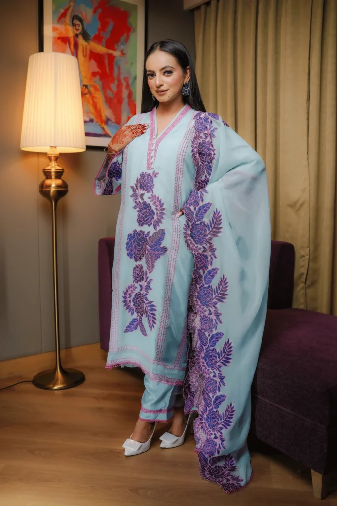 Every suit set in our collection is a canvas—rich with delicate embroidery, luminous zari work, and dupattas that whisper stories in threads. Whether you’re dressing for a casual brunch or a festive gathering, our designs move seamlessly between everyday wear and semi-formal elegance.